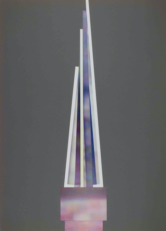 Turmskulptur, 1986, Collage aus Teilen von Offsetdrucken von ‚... mein täglich Bild von D.’, 70 x 50 cm